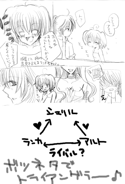 年末年始+諸事情で遅くなりましたがやっと、 落ちついてネット諸々できる環境になりました。 いや、もうね、お年賀イラストとか 季節はずれもイイトコですよねー…(UP迷い中…) …1月もう中頃ですもんねーハハハ…orz そんな感じで今年もマイペースに細々と 更新していきますので宜しくお願いします。 …そして忙しくて3月のCity申し込み忘れますた… アルシェリでSP取りたかったなー…(遠い目) そそそそして00!!やー新OPですね!! 今更見ました(笑)ティエは可愛いなー(末期) で下はボツ漫画の一部。 (ボツ漫画なので途中までです>笑) 趣味に偏りまくりなトライアングラー。 ランシェリは外せない♪(個人的に) PR COMMENTSCOMMENT FORM TRACKBACKSTRACKBACK URL |